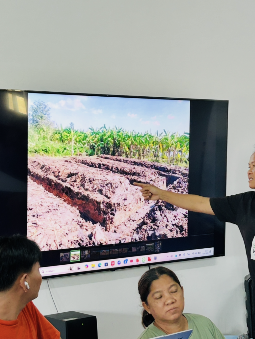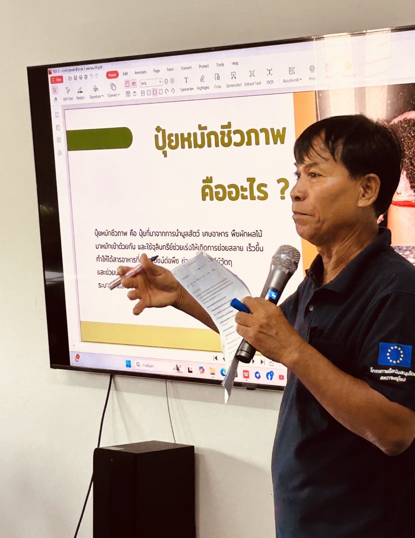 นอกจากการย้อนทวนประสบการณ์และแลกเปลี่ยนเกี่ยวกับแผนงานในอนาคตแล้ว สมาชิกที่เข้าร่วมประชุมยังได้รับความรู้เพิ่มเติมเรื่องโครงสร้างดิน และชมการสาธิตวิธีทำการผสมดิน โดยสุขสันต์ กันตรี เจ้าหน้าที่เทคนิคเกษตร จาก มกย. เป็นวิทยากร และยังได้เรียนรู้วิธีการทำปุ๋ยชีวภาพจากวัสดุที่หาได้ในครัวเรือนและชุมชน อย่างฮอร์โมนหน่อกล้วย ฮอร์โมนนมสด โดยทีมวิทยากรจากชุมชนพื้นที่เดิม โดยเฉพาะฮอร์โมนนมสด เป็นสูตรที่ “หน่อย” ผู้ประสานงานมพศ. บอกว่า สามารถใช้ได้จริง เนื่องจากมีการปรับสูตรที่ได้จากการอบรมครั้งก่อน ๆ เรียบร้อยแล้ว แถมด้วยสูตรน้ำหมักไล่แมลงจากวัสดุที่หาได้ในชุมชนอย่างฝักคูณ เป็นสูตรที่ “แจ็ค” หรือ ชาตรี เขื่อนแก้ว ผู้รับผิดชอบโครงการฯ ใช้เวลาศึกษาอยู่หลายปี ทั้งเรียนรู้และลองผิดลองถูกจนนำมาใช้แล้วเห็นผล